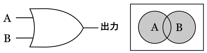 OR回路は、どちらか一方でも1であれば出力が1になります。